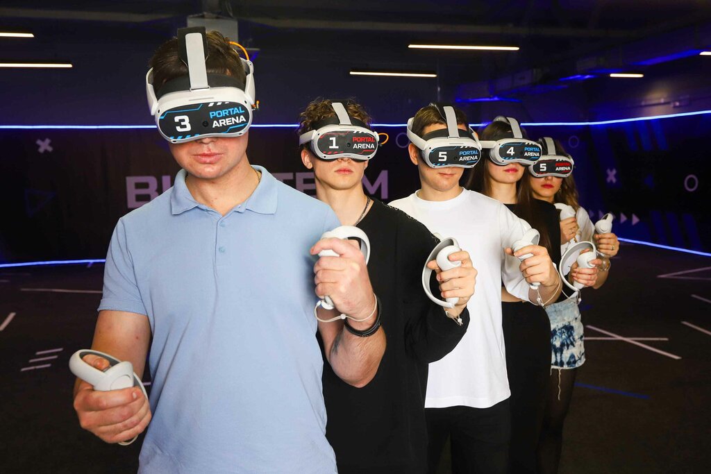 VR Арена - современный аналог лазертага, пейнтбола и Сounter-strike со свободным передвижением на площадке 200 м². Открытая игра на арене Portal Strike шлем Pico 4 60 мин (к вам могут присоединяться другие игроки до 10 чел)