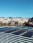 A beautiful old building in which a shopping center is now located, an inexpensive mercadona grocery store is located below, and at the top on the roof of the perimeter of the building there is a panoramic platform with a huge number of cafes and a gorgeous view of the Plaza de Espana