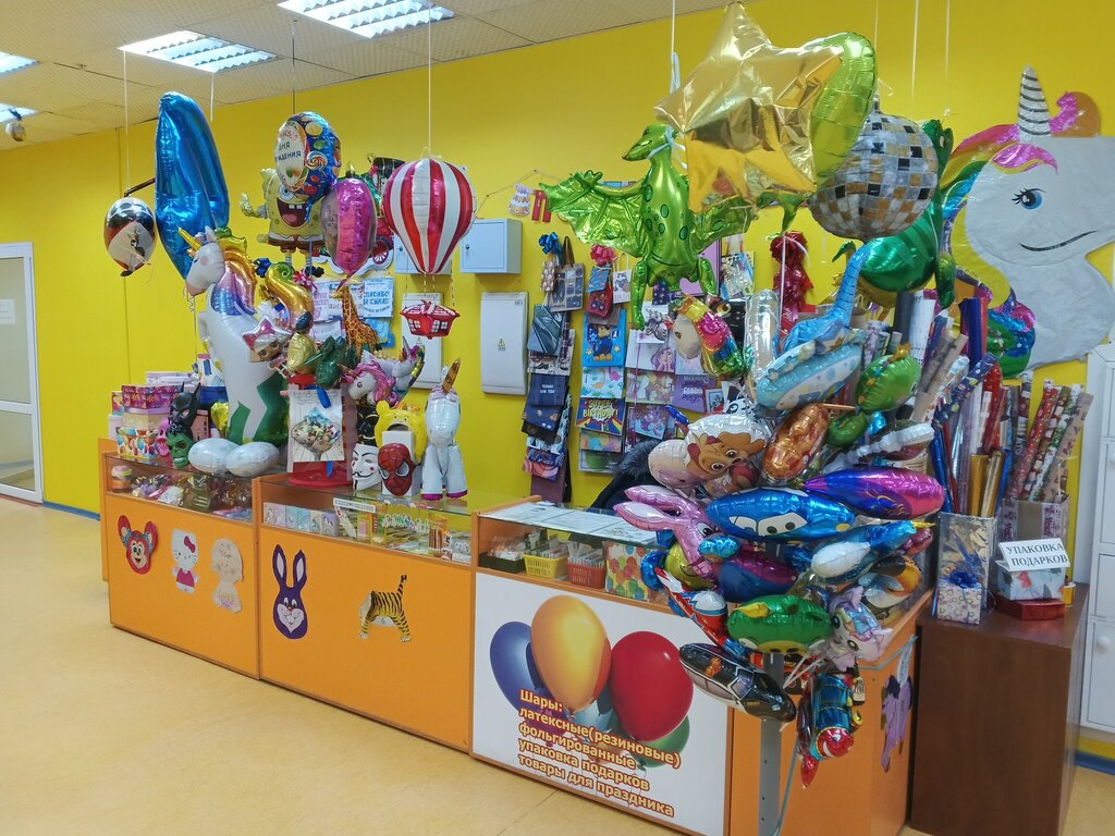 Не большой отдел с позитивной атмосферой для праздников, день рождений)). Можно посмотреть шарики, подарочные пакеты, коробочки и красиво упаковать ленточками, бантиками а также маски, открытки и другой ассортимент подарочных изделий. Приятно же когда Вам дарят подарок, красиво упакованный)). Есть парковка, остановка.