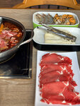 To be honest, I was disappointed with my visit to Seven Hotpot. Compared to other hotpot restaurants in Abu Dhabi, this one turned out to be worse. First of all, everyone was given aprons, except for me. I probably wouldn't have taken it myself, but it would be inconsiderate not to even offer it. In other Abu Dhabi hotpots, the staff is much more caring: they regularly check the temperature of the pan so that the food does not burn and you can comfortably eat. Here, the switch was on the other side, I couldn't control it myself, and even when the staff saw that I was all in a pair, they didn't react in any way. The food was very ordinary — nothing special, although I really liked the sauces. Everything is also strange with the order: they wanted to do it "in Chinese" using a QR code, but in the end they still need to call the staff to confirm the order, which looks rather illogical and complicates the process.
