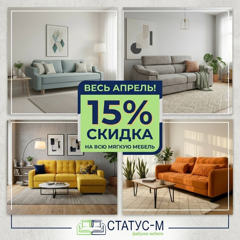 Весь апрель — скидка 15% на все диваны в «Комфорте»! Пора обновить интерьер, создать место для тёплых встреч и отдыха. Выбирайте диван мечт...