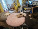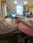 Чудесное место! Уютно, красиво, чисто. Ухоженные котики. Ласковые и дружелюбные! Сами залегают на колени, играют. Мы попали в тихий час, но смогли всех перегладить! Есть небольшая уютная кухонька с кофе-чаем и вкусняшками. Для молодых людей есть две приставки с играми.