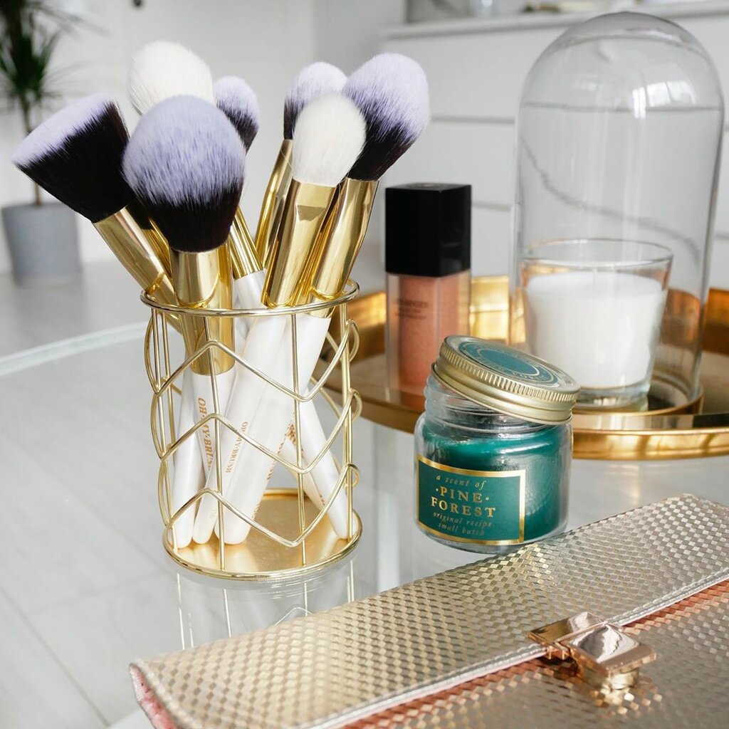 Кисти очень красивые, качественные, удобные. Давно хотела приобрести набор, но посчастливилось победить в розыгрыше. В наборе 6 кистей - 2 для теней (отлично растушевывают границы, наносить сухие тени ими неудобно), большая кисть для основы (прекрасно распределяет неплотные тональные текстуры и кремовые румяна), кисть для консилера, двухсторонняя кисть-щеточка для бровей (ей очень удобно наносить помаду для бровей), кисть с длинным ворсом деликатно наносит и зашлифовывает хайлайтер. После нескольких использований осталась очень довольна, теперь думаю приобрести ещё несколько кистей отдельно.