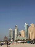 Free beach with fine white sand in a good area , close to a shopping center, shops and cafes/restaurants . There are changing cabins and a toilet on the beach (dirty of course), there are bars. The beach is being cleaned , of course there is no large debris, but some nationalities manage to throw a cigarette butt into the sand. The coastline is wide and long , and it takes a long time to choose a place to relax . There are no borders between the beaches, in the area of Jumeirah Beach and Marina Beach there is a water inflatable water park (paid) Aqua Fan, located 50 meters from the shore. The approach is smooth , as well as the entire coast is sandy The VIEW on the beach opens onto the Ferris wheel and high-rise buildings (the Parus hotel and Burj Khalifa are not visible) .