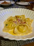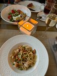Впервые была в этом ресторане - ожидала итальянских блюд в классическом исполнении, но как-то не сложилось. Изначально заказала свои любимые равиоли с рикоттой и шпинатом - мне принесли совершенно холодные равиоли, по форме похожие на китайские пельмешки, попробовав кусочек поняла, что есть их не могу, потому что мало того, что они остывшие, так еще и сильно пересолены, пришлось попросить переделать. Неудавшуюся порцию у меня забрали, однако через какое-то время пришел менеджер и стал объяснять, что они на самом деле не пересолены вовсе, а просто рикотта - это очень соленый сыр (!), это что-то абсолютно новое для меня, перепробовав огромное количество блюд с рикоттой узнаю, что она, оказывается, очень соленая. В общем, мне было рекомендовано, если я не хочу пересоленое блюдо, не заказывать в этом ресторане равиоли с рикоттой, а заказать другие, что ж со второй попытки я получила другие равиоли, на этот раз с креветками, и снова остывшие, хоть и слезно просила официанта принести мне горячее. Пришлось просить их подогреть, как и моей подруге, которой принесли совершенно остывшую пасту с цыпленком. В общем, мы пришли к мнению, что и паста и равиоли по вкусовым качествам на троечку, по своевременности подачи на единичку. Aperol Spritz и вино вполне приемлемые, но их трудно испортить, не правда ли?) Возвращаться я бы не стала, в этом же ценовом сегменте есть множество мест с сервисом получше, а едой повкуснее.