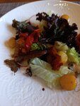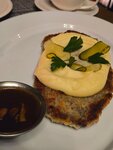 Приятная веранда и очень дружелюбный персонал. Хрустящие баклажаны хрустели на славу, а вот бифштекс на дранике не понравился, драник просто утопал в масле. Можно же оставить его на салфетке. После такого блюда нужен Мезим. Ну и 0,25 воды без газа за 450 рублей, как по мне - это перебор в месте с четырехзначными ценами за блюда.