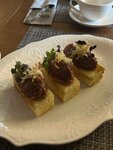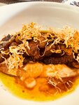 Ходили в этот ресторан на день рождения друга семьи. В целом заведение понравилось, интерьер красивый, душевный. По еде: Брускеты очень вкусные. Кальмар фаршированный моцареллой и запечённый баклажан с острым цыплёнком тоже вкусные. Цыплёнок не такой уж и острый:) А вот удивило конечно наполнение салата с креветками и авокадо 🙈 Сами креветки далеко не королевские, а обычные маленькие 60/90 и то 3 штуки порезаны вдоль пополам (😳впервые такую экономию вижу), чтобы в итоге получилось на вид 6 штук, четвертинка огурчика мелко нарезана, пол помидорки так же мелко нарезано и половина авокадо (ну хоть его не пожалели 😃). В целом вкусно конечно, но повар сэкономил на приготовлении очень знатно 🙄 Цена 950₽, себестоимость не более 100-200₽. Официантка томная, не улыбчивая, принимала заказы и обслуживала без особого желания... По виду ждала окончания рабочего дня. За интерьер 5ка, обслуживание 2-3, еда вкусная, но есть вопросы к повару 😏 Самый приветливый и доброжелательный это мужчина в гардеробе 🙂 Не думаю, что пришёл бы сюда ещё раз.