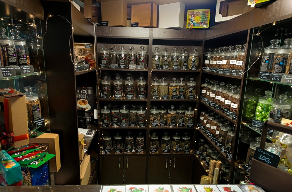 Большой ассортимент чая и кофе, хорошо, что можно купить маленьким объемом, попробовать, оценить, вкусные напитки навынос, много красивых подарочных наборов на любой праздник, вежливое обслуживание, продавцы, при необходимости, всегда помогут с выбором.
