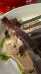 Еда тут очень в плохом исполнении. Максимум можно попить чай и скушать десерт. На фото стейк. По вкусу пережаренная резина.