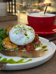 Очень вкусный авокадо тост с креветками. Хожу заним только туда.