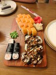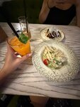 В первую очередь могу сказать что долго хотела зайти в это заведение, ведь была тут давненько. Стоит всë таки отметить вежливый и ОТЗЫВЧИВЫЙ персонал. Пришла с личной просьбой на что получила значимую помощь. Заказывала: Кавказский салат; Цитрусовый лимонад; Классические роллы с огурцом. Сразу стоит выделить что персонал знает меню и состав блюд, а также в меню выделены вегетарианские блюда. Салат был сделан из свежих овощей, единственное листья салата в заготовках (тобиш помыть и убраны в холодильник) были на вид дней 3-5 назад. Во рту от масла остаëтся неприятное послевкусие. Цитрусовый лимонад напоминает обычный лимонный тоник с добавлением лимонного сока, мяту не почувствовала. В целом для удаления жажды в жару сойдëт. На счëт роллов ничего негативного сказать не могу. Красивая подача , заранее принесли соевый соус и палочки. Единственное официант забыла принести пиалу ( небольшая тарелочка для соевого соуса). Общее мнение, сложившейся после посещения данного заведение хорошее. Стоит отметить уют и работу официантов. Ценник вышел на 980₽, в целом более чем приятно удивила цена, ожидала больше. Осталась довольна так что рекомендую к посещению. P. S. Я постаралась оставить максимально честный и подробный отзыв. Отдельно благодарна людям который тоже оставляют отзывы и так же помогают людям выбрать хорошее место для времяпрепровождения.