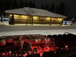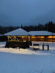 Были 8-10 февраля. Были одни!!! и в поселке тихо. Доехали без проблем по навигатору, дорога чищенная. Персонал приветлив, отзывчив и не навязчив. В домике тепло и чисто. Есть холодильник, кофемашина, эл плитка, кулер, чайник, ножи(тупые) и прочи приборы Зимой из развлечений только прогулка по лесу или посёлку. Рядом есть конюшня, но просили туда не ходить... Мангал без крышки и сначала надо убрать лёд и снег а за тем уже готовить. Еду брали с собой. Не далеко есть кафе (от туда можно заказать еду) и магазин Дикси. Мы обошлись своими запасами.