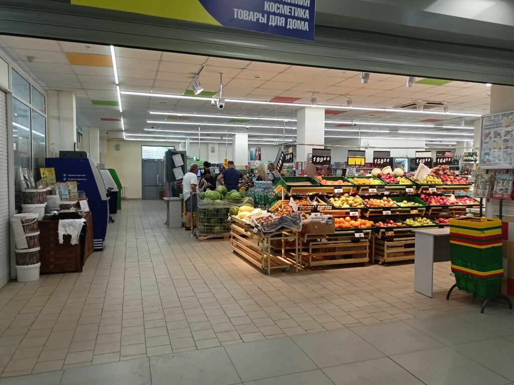 Отличный продуктовый магазин! Рядом с домом, так что очень удобно. Выбор товаров большой, но не всегда всё свежее. Персонал, за исключением некоторых, приветливый и адекватный. Иногда на кассе большие очереди, но тогда работают два продавца и две кассы самообслуживания.