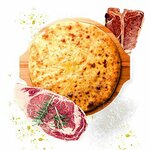 Фирменный осетинский пирог «Асса» с вкусным мясом говядины и баранины, ароматными специями и зеленью.