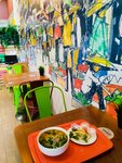 Очень вкусный том ям, который готовят настоящие тайцы😳 приветливый персонал( в последний раз попался кассир Мухаммад очень приятный молодой человек, подробно и четко рассказал о всех позициях в меню) К тому же очень советую манго-шейк, он здесь самый отпадный! пьешь и чувствуешь себя в Тае. Еще расширилось меню, стало больше интересных позиций на любой вкус и цвет. Цены приемлемые за такие порции, все супер!