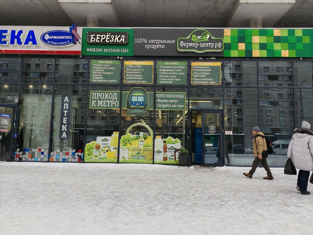 Худший из филиалов Фермер-центр. Выглядит магазин, как склад, который обнесли грабители. Ассортимент хуже, чем просто узких, там полупустые холодильники, порядка 0, а некоторые продукты выглядят так, будто их везли поездом Москва-Новосибирск в старой дорожной сумке, а потом их положили на полки в магазине.