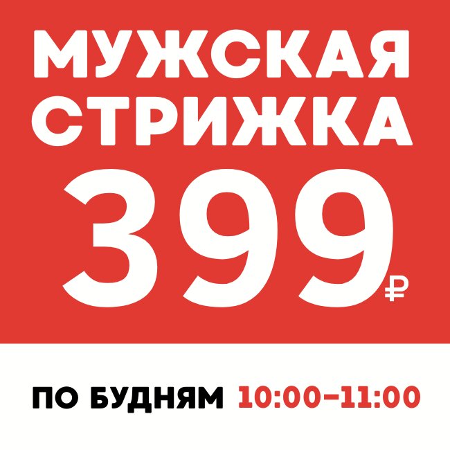 Любая мужская стрижка. Мытье головы входит в стоимость. С 10:00 до 11:00 стрижка 399