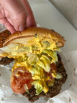 Два приготовленных на огне фирменных говяжьих бифштекса, два ломтика слегка расплавленного сыра, хрустящий маринованный огурчик, лук, горчица и кетчуп. И все это в подрумяненной и посыпанной кунжутом булочке