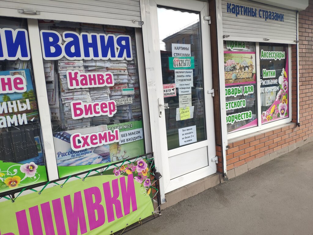 В этом магазине есть всё для вышивания крестом и бисером,разные аксессуары для рукоделия! Картины для рисования,картины в алмазной мозаике. Всегда покупаю великолепные наборы для вышивки крестом .Ассортимент просто огромный, на любой вкус! Продавцы очень вежливые и внимательные! Советую посетить!