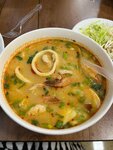 Я не ценитель и не любитель тайской еды, в это кафе меня привела подруга, поэтому полностью доверилась ее выбору блюд и вкусу. Мне было вкусно всё, суп наваристый, много больших креветок, салат тоже взяли с креветками, вкус салата необычный, приборы одноразовые пластиковые или палочки, кому как удобней. Отзыв пишу не сразу, никаких расстройств желудка не было, изжоги и прочих неприятностей тоже (начиталась отзывов и насторожилась), но всё напрасно. Обслуживание вежливое, порции большие, к блюдам претензий нет, в зале чисто, столы убраны, поэтому ставлю уверенные 5 звезд.