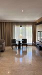 I am staying at this hotel for the umpteenth time. What can I highlight from the advantages: the territory is really green, which is amazing for Dubai, there are several pools and a private beach with sun beds. There are several restaurants on site, and a bar on the beach. The staff is Russian-speaking, so if you do not have knowledge of a foreign language, they will help you. On the downside: they've already moved into different villas several times, but each one stinks of cigarettes, and the last time they even asked us to move because we couldn't breathe. I would recommend specifying at the time of booking that you want a non-smoking villa, otherwise you will face the same problem as us. The breakfast we always take here is quite good according to the buffet system, there is not a strong choice of dishes, but all the basic products will be here. There are some small shops and a supermarket nearby, and you will have to take a taxi to the Dubai Mall, as it is not very close. There is always a polite staff at the reception who is ready to help you. It's probably going to be a little boring with the kids, since there's not much entertainment here, but as a place to stay for a couple of days, it's great.