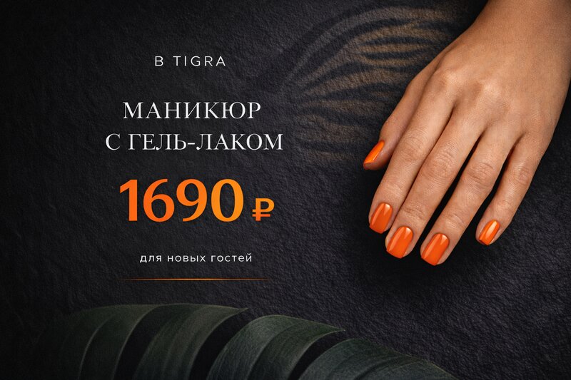 Маникюр с покрытием гель-лак всего за 1690 р. при первом посещении TIGRA! Снимем аккуратно старое покрытие (если есть), сделаем бережно гиги...