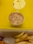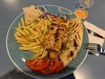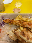 Ну неплохо конечно, но это вообще не гирос/мерида, куриный шашлык с картошкой Вместо традиционного соуса или йогурта сделали кетчунез…. Картошку фри невозможно испортить Ну курица, опять же, просто куриный шашлык
