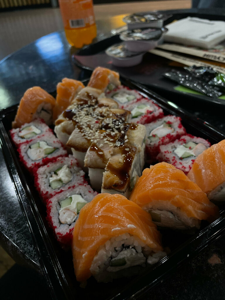 Посетили это место после кинотеатра. Вкусный сет 'Креветка, угорь и лосось', посоветовали зимний вариант чая - облепиховый. Филадельфия как всегда очень вкусная , Майами с креветкой нежные, а с угрем - развалились, но на вкус совсем не повлияло. Неплохое место, нам понравилось, зайдем ещё раз.