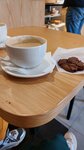 Маленькая кофейня рядом с вокзалом, очень понравился кофе с урбечом, насыщенный вкус,витрина не большая, но есть чем полакомиться 👌 есть места, где можно зарядить гаджеты, персонал все делает размеренно, не торопится 😊