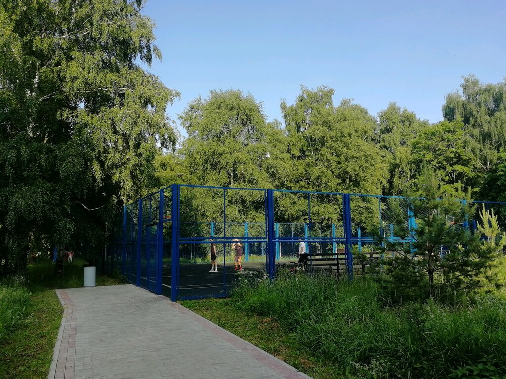 Хорошая площадка постоянно есть с кем поиграть. Классные щиты кольца и сетка Из минусов крошится покрытие и не хватает света