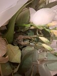Купили по пути в ресторан букет для именинницы. Когда разбирали букет, чтобы поставить в вазу, рассмотрели и были очень сильно разочарованы. За огромной упаковкой оказалась плесень, опавшие листья, поломанные бутоны, а неопознанные палки оказались бывшими лилиями, лепестки которых были глубоко внутри упаковки. Не понимаю, как можно выставлять и не следить за состоянием букетов, а потом продавать их людям за оверпрайс.
