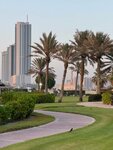 A great beach, clean, there are always umbrellas and sun beds, there is where to swim, unlike the squalid puddle of the neighboring pretentious Sheraton. Tame rabbits run around the territory, pheasants walk, birds sing in a cage. The food is great, the room is normal, the staff is polite. A couple of people at the reception speak Russian, all the others speak Indo-Filipino English of the "tu ti tu room tu-tu" level. During the holidays, 90% of the vacationers are Russians with children. Located away from everything, taxi to the center of Sharjah is 25 dirhams.