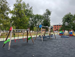 Детская площадка. Есть очень много всего. Находится в парке рядом с кафе. Прекрасное место чтобы передохнуть по дороге с/на море.