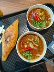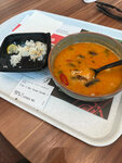 Ко мне приезжал друг из другой страны. Гуляли по торговому центру «Моремолл» и решили перекусить. Мой друг захотел изначально пан азиатскую кухню, так как там есть позиции для вегетарианцев. Но я его переубедила и сказала, что раз ты уже здесь попробуй что-то новое (спойлер:лучше я бы этого не делала, мне было очень стыдно весь день и мы еще несколько часов вспоминали этот кринж). Выбор пал на кафе Вахтанг, которое поцизиционирует себя как кафе грузинской кухни. Он решил заказать лобио. И самое первое разочарование это подача блюда. Я была готова провалиться под землю, когда увидела его с подносом в руке на котором стояло что-то наподобие одноразовой посуды. И он сам был в шоке, потому что впервые с таким столкнулся. Он спросил: «Что это такое? Почему у вас в меню это выглядит совершенно по-другому?». Если у вас в меню нарисовано одно, а по факту вы подаете и сервируете это иначе, то это уже обман покупателя. Самим лобби за 450 рублей тоже остались не довольны. Лучше бы выбрали другое место, где хотя бы можно поесть как люди из нормальной посуды. P.S Для сравнения прикладываю мой заказ том яма с курицей с нормальной человеческой подачей в тарелке в том же самом фуд-корте.