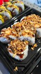 Эби бум,фиш,запеченный с крабом,жареный лосось криспи В сет входит: 2 соевых соуса, 1 имбирь, 1 васаби, 2 пары палочек
