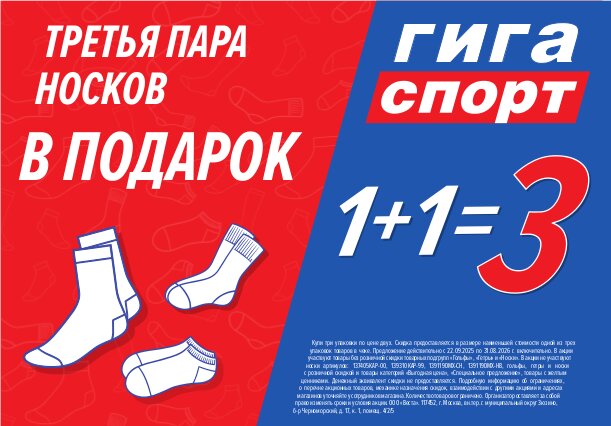 Организация оставляет за собой право менять цены, сроки и условия акции. Актуальные цены уточняйте в розничных магазинах «Гигаспорт» Организатор: ООО «ВЕСТА», адрес: г. Москва, вн.тер.г. муниципальный округ Зюзино, б-р Черноморский, д. 17, к. 1