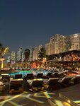 A nice place with a view, delicious fresh watermelon, live music in the evenings. The view is right on the Eye of Dubai. In the evening, they are allowed inside only for dinner or with drinks of alcohol, you can drink tea only outside)