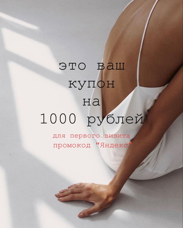 Забери купон на 1000 рублей для своего первого визита! Напиши нам в сообщении промокод "Яндекс" и запишись на процедуру со скидкой, ждем теб...