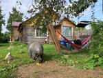 Очень уютная гостиница с атмосферой деревенского дома. На территории живут куры с петухом, в меру упитанная свинюшка, лабрадор, который обожает всех гостей и кот. По утрам кормят волшебной кашей - ел бы такую каждый день. Можно заселятся с животными. На территории есть удобная парковка. Придраться не к чему, теперь постоянно тут останавливаемся. 8) Вроде есть баня, но я не интересовался.