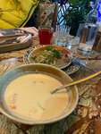 Начну с того, что я истинный поклонник Грузинской кухни) по счастливой случайности мне удалось пообедать в этом ресторане. ОООчень всё вкусно: пхали, хачапури, афигенный сырный суп с креветками(кстати в нем был копченый сыр чечил - по мне это классное вкусовое решение) огромный, хрустящий и вкусный Наполеон с нежным кремом) чек выше среднего, но эт наверное из-за локации. Обслуживала официант Елена - мастер своего дела, безусловная компетентность, тактичный и очень вежливый подход к гостю. Из минусов, девушка - хостес, на входе встретила фразой цитата: «Вы будете один?, Добрый день…» нууу ребят, вы чего.. есть ведь более подходящие формулировки вопросов, например: «На сколько персон подобрать столик для Вас?» «К Вам присоединится кто-то ещё?» и т.д… Считаю, что это очень серьезная недоработка