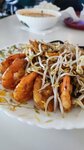 Удивлена, что тут мало отзывов, часто попадаем в очередь когда тут едим) У нас с мужем это любимое заведение на гастрокорте, до него думала, что вьетнамка — вообще не моё) Очень вкусно, порции на двоих можно брать спокойно, готовят быстро, цены крайне разумные, продукты просто нереально свежие, прям с картинки 🤌 Домашний вайб присутствует ☺️ Наши фавориты: том ям (небольшой остроты берем), пад тай с креветками (на фото), немы обычные, немы в панировке, гой с креветками, какое-то блюдо под номером 30 в меню и какая-то вкусная штука из соевых ростков с говядиной 😅 Еще тут бабл ти неплохой, тапиока вкусная, цена в два раза ниже харучи)