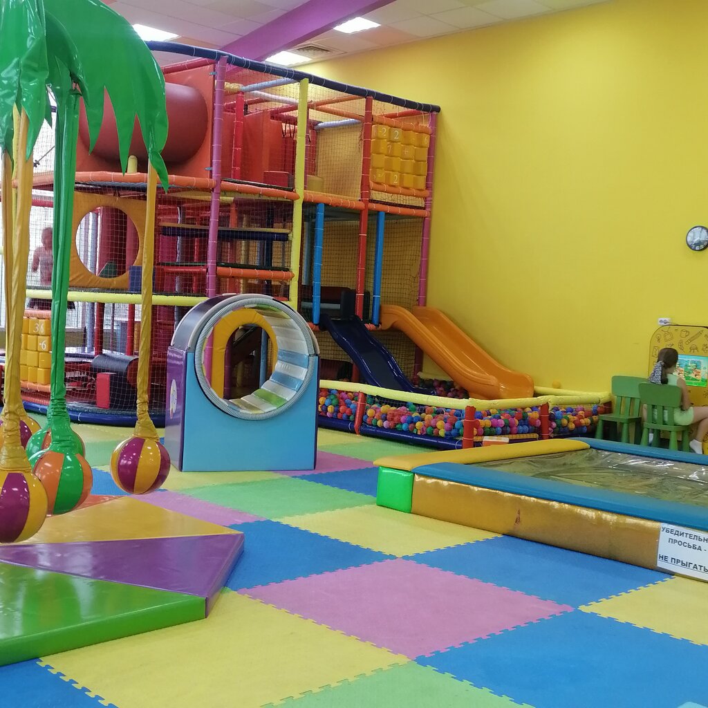 Очень уставшая детская площадка.Порванные и поломанные игровые элементы на всех каруселях,батут скрипит и торчат пружины,ощущение будто вот-вот порвется,всё грязное и пошарпанное.Не ходили никогда и не надо было начинать,15ти минут хватило сполна. Ведь туда приходят и совсем маленькие детки,которые лезут облизывать всё и ручки/ножки могут попасть в те же щели батутные…неужели настолько наплевать и лишь бы деньги срубать с людей?
