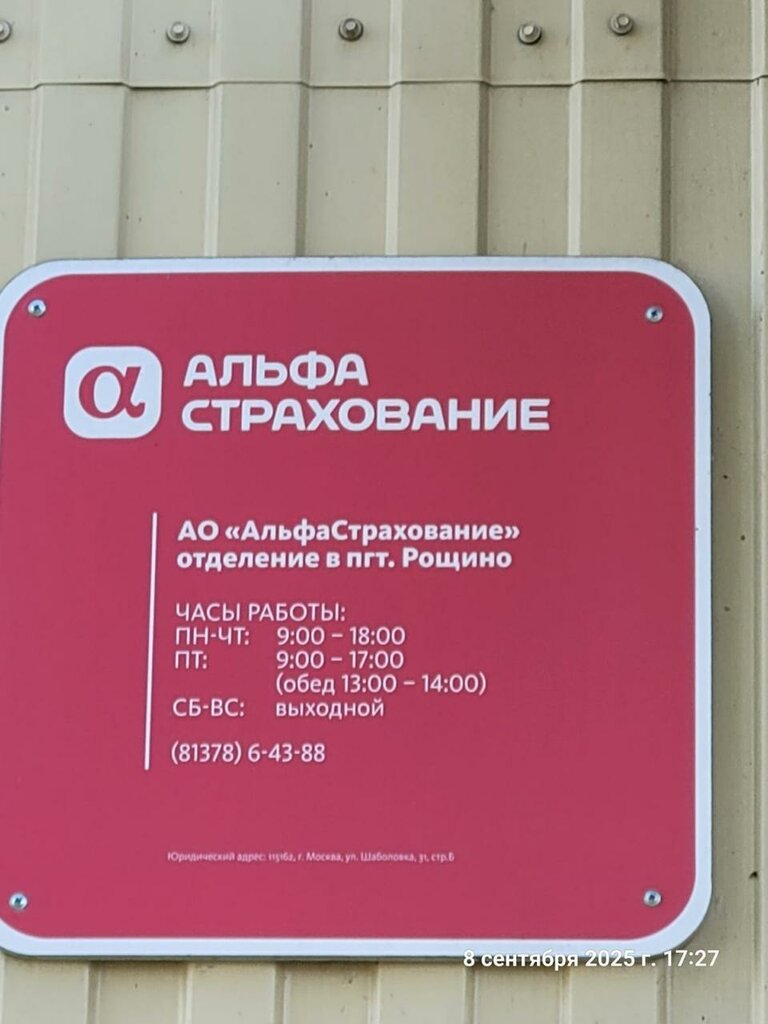 Legal name of the organization:Акционерное Общество "Альфастрахование"