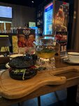 Ходила сюда впервые два года назад, и тогда мне место больше понравилось, чем в этот раз. Брала за вечер бургер с вишней, креветки попкорн, чай японская липа и чизкейк пекан. Бургер 6/10, вишня и смородина сильно перебивает вкус и котлета была суховата, слишком специфическое сочетание. Креветки шикарные 10/10, как и чай. Чизкейк пекан отличный, но обидно, что положили только один маленький кусочек грецкого ореха. Посмотрела отзывы других и у них было больше орехов, за кусочек по 350 р правда не хватило. Обслуживание очень хорошее, была приятная девушка, в заведении всё чисто, обслуживание быстро и комфортно. Ещё мы смотрели фильм на неделе кино и звук был очень тихий, но ещё звук перебивала дрель из соседнего помещения. За чек 1400 р было чувство, что они не окупились в плане радости от блюд. Но всё равно место хорошее и приятно здесь провести вечер.