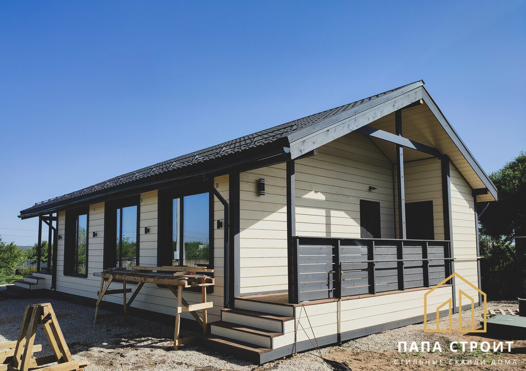 Дом полностью пригоден для круглогодичного проживания. В доме на 75 кв. м. размещаются 2 спальни, просторная кухня-гостиная, сан. узел, гардеробная, большая прихожая. А на террасе в 23кв.м. можно принять большую компанию.