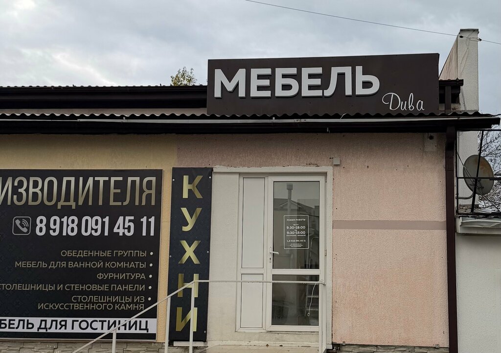 При переезде в Геленджик по рекомендации родственников обратилась в мебельный салон Дива и не ошиблась.Проффесиональный специалист Эльвира сделала замеры, помогла с дизайном расположения мебели и помогла подобрать цветовую гамму всей заканной мебели.Мы заказали в Диве шкафы купе и наполнение полок внутри Дизайнер Эльвира продумала грамотно и фукционально, также кухонный гарнитур удобен для использования и качество хорошее.В дальнейшем при переезде мы еще много мебели заказали в Диве мебели кроватьс тумбочками мне тоже очень, очень нравится и зоновые перегородки тоже заказывали в этой компании с советами специалиста дизайнера Эльвиры.Я бы порекомендовала обращаться за мебелью в этот салон и дизайнерским решением у специалиста Эльвиры Качество всех изделий прекрасное.Мебель собирал специалист Артур и его работа тоже заслуживает хорошей оценки.Я очень довольна, тем что практически не зная города, фирм я попала к хорошим , грамотным специалистам и просто не равнодушным и отзывчивым людям в салоне мебели Дива