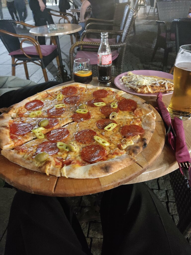 The pizza is delicious, the prices are reasonable, the portions are large.