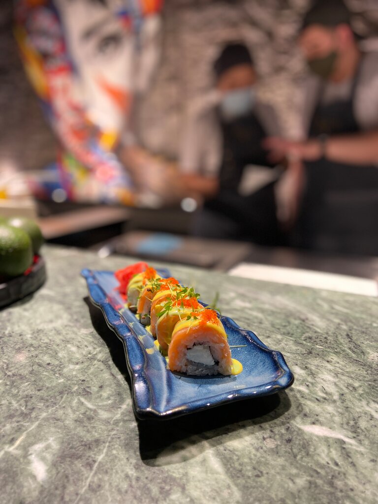 Расположение данного кафе в центре, в пассаже, от чего делает его местоположение удобным. Блюда достаточно интересные, сродни интерьеру. Зал маленький, от чего расстояние между столами уменьшино, но это не вызывает неудобства. Приветливое обслуживание, но столы не предполагают расположения оверсайз людей. Общие впечатления от еды: Блюда не являются сложными, но подача достаточно интересная. Новаторский подход к блюдам, который интересно подчёркивает интерьер и музыкальное сопровождение данного места. Несмотря на это, цена достаточно высокая , что оправдывается свежестью морепродуктов. Блюда с некоторыми изъянами, но они не выделяются на общем фоне композиции. Для обычного обывателя данное место покажется дорогим, но его удивит подача и сервис заведения. Само заведение дарит уютное времяпровождение в вечернее время, на даче по мотивам рамонтичных фильмов. Оценки. Интерьер 9/10. Пространства мало, но заведение не имеет перегруз, несмотря на нахождение кинотеатра, который маскируется темноте, длинной барной стойкой и освещением. Еда 8.5/10. Несмотря на простоту, она имеет определённые фишки мировой культуры.  Персонал 9/10. Персонал вежливый, учтивый, помогает с выбором блюд, но не знает о них все. Десерты 10/10. Единственное заведение в городе, где можно попробовать близкие к оригинальном рецепту моти. Авторский алкоголь 9/10. Вкусные позиции, которые выражают видение бармена и готовность к экспериментам. Алкоголь в составе коктейлей является дорогим. Зрительская симпатия: 7. Советуем к посещению.