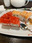 Ожидали, что будет всё вкусно, а на самом деле!!!Заказали чесночный соус и картофель по деревенски, подали отварную картошку ,соус без чеснока один майонез. Дальше заказали роллы: они такие огромные, что даже в рот не полезли, а состав ролл входил видимо один рис.Единственный плюс , вежливый персонал и вкусный чай.