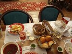 Обстановка отличная, уютная. Обслуживание не очень, официанты не особо торопятся принимать заказы. Брала борщ-на 3: в нем фасоль и он не насыщенный. Блины с творогом и вишней очень вкусные. А чай оставил неизгладимое впечатление: когда наливала из чайники, половина напитка пролилась на стол, т.к чайник с дефектом. Но передо мной даже не извинились и не предложили замену, хотя я сказала о проблеме.